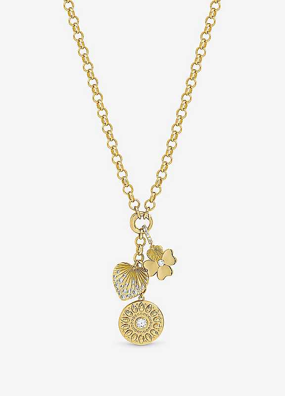 Inicio Gold Plated Multi Charm Necklace - Gift Pouch - Size ONE SIZE