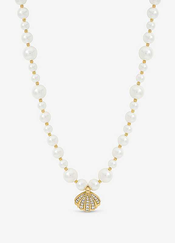 Inicio Gold Plated Pearl & Crystal Shell Necklace - Gift Pouch - Size ONE SIZE