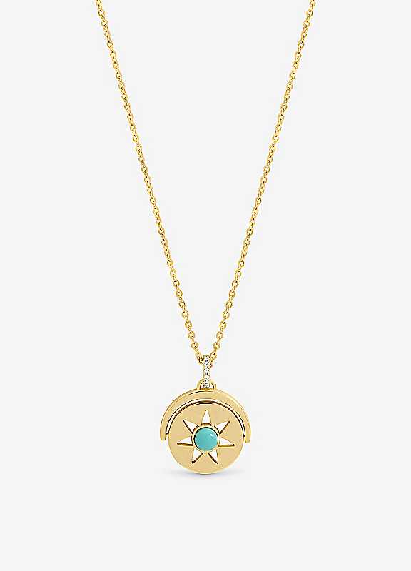 Inicio Gold Plated & Turquoise Celestial Spinner Pendant - Gift Pouch - Size ONE SIZE