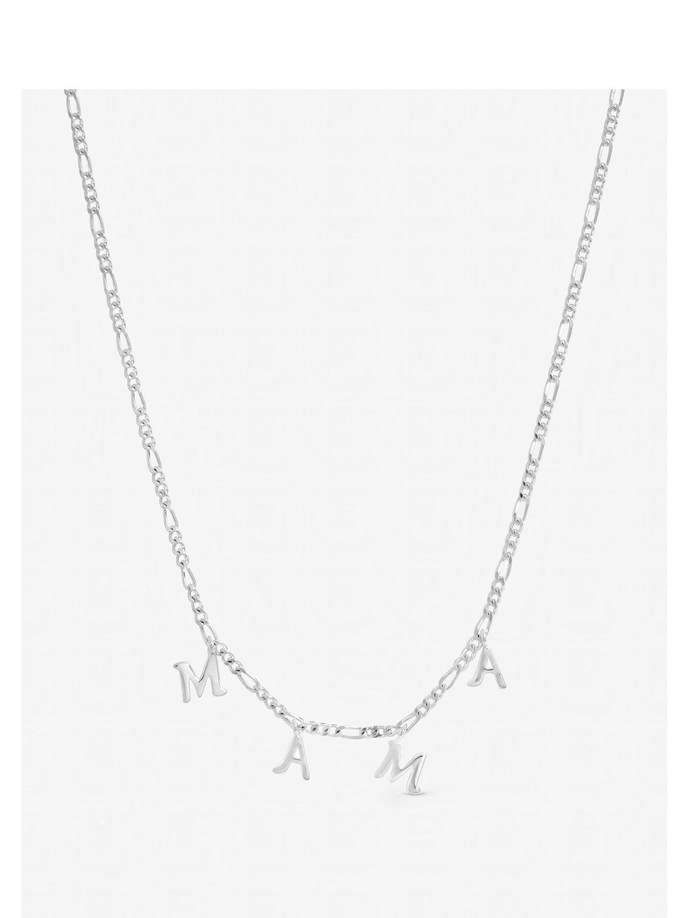 Inicio Mama Necklace - Gift Pouch Our Inicio Mama Necklace Combines Timeless Elegance With A Meaningful Touch. The Polished Sterling Silver Plated 'Mama' Necklace Features Letters Spaced Along A Delicate Figaro Chain, Creating A Chic And Modern Design That'S Both Stylish And Sentimental. Lightweight And Versatile, It Sits Beautifully On The Neckline, Making It Perfect For Layering Or Wearing Alone As A Statement Piece. Presented In A Drawer Box, Ready To Gift, It'S The Perfect Way To Celebrate Mother'S Day, Birthdays, Or Simply Show A Cherished Mum How Much She Means. A Thoughtful Keepsake She'Ll Treasure Forever. Fastening: Lobster Clasp. Chain Length: 16", Extender Length: 2". Width Dimension: 5Mm. Length Dimension: 406Mm. Material: Sterling Silver Plated Brass. Depth: 406 Mm Height: 16 In Width: 5 Mm