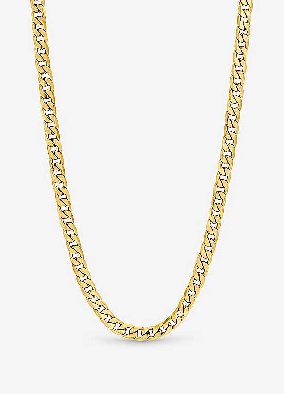 Our Inicio Men's Gold Plated Waterproof Curb Chain Necklace is made to be durable and sleek, this design is resistant to water and daily wear, making it perfect for active lifestyles. A versatile, minimalist accessory, it adds a bold, contemporary edge to any outfit.Fastening: Lobster claspGold Plated Stainless SteelSize approx. 7W x 508L mm