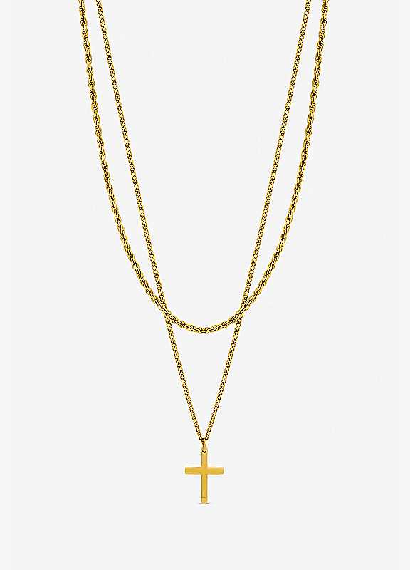 Our Inicio Men's Gold Plated Waterproof Double row Cross Necklace is made to be durable and sleek, this design is resistant to water and daily wear, making it perfect for active lifestyles. A versatile, minimalist accessory, it adds a bold, contemporary edge to any outfit.Fastening: Lobster claspGold Plated Stainless SteelSize approx. 17W x 508L mm