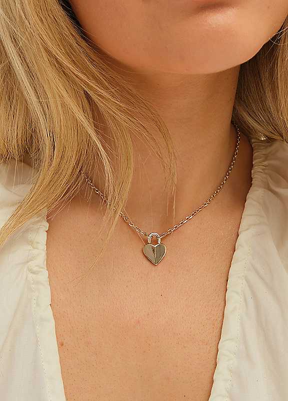 Our Inicio Two Tone Heart Pendant is a must have, featuring a delicate heart design that blends warm gold tones with sleek silver accents, this pendant offers a modern twist on a classic symbol. Perfect for gifting yourself or a loved one.Fastening: Lobster claspCostume jewelleryComes in a gift pouchTwo Tone Plated Base MetalWidth approx. 14.7 mmLength approx. 406 mm | heart design pendant, two tone necklace, gold pendant designs, gold pendant for women, heart pendant necklace, lobster clasp jewelry, delicate pendant necklace, heart shaped pendant