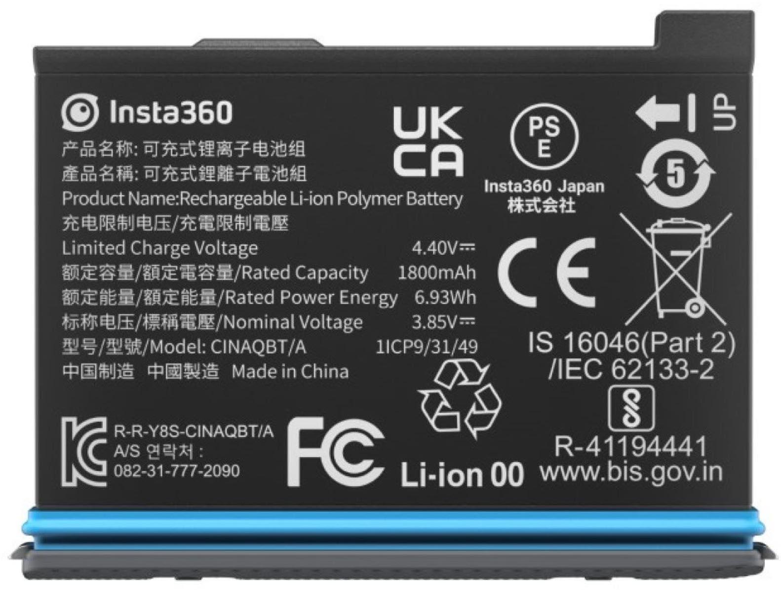 A high-performance rechargeable lithium-ion battery designed specifically for the Insta360 X3. Provides long-lasting power, quick recharging, and dependable performance in demanding conditions.