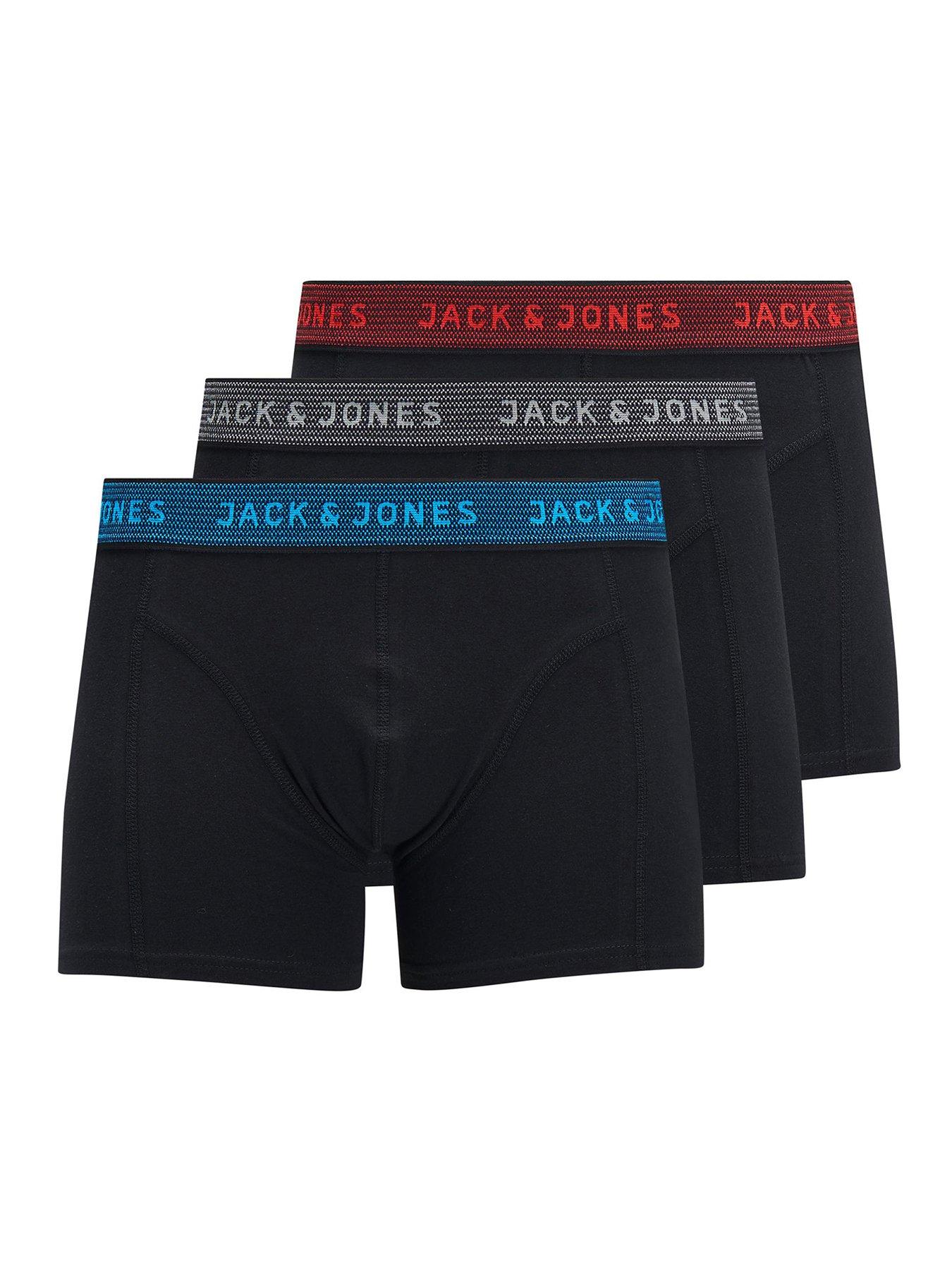 Jack & Jones Junior Boys 3 Pack Waistband Trunks - Asphalt Hawaian Ocean & Fiery Red Material Content: 95% Cotton, 5% Elastane Washing Instructions: Machine Washable
