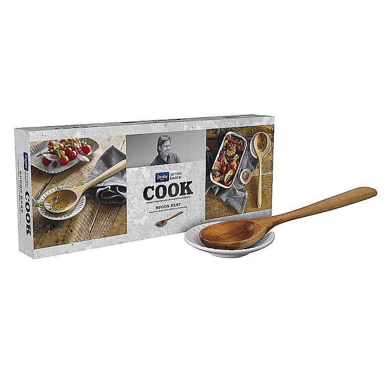 James Martin Cook is a stylish range of oven to tableware and kitchen accessories which are functional but look great as leave-out-on-display solutions for the kitchen. A Stylish and practical addition to your worktop, this spoon rest will keep your worktops clean and safe and features a stunning textured pattern on soft grey porcelain. This item includes a wooden spoon. James Martin Spoon Rest Features: Rest made from Porcelain Oven, microwave, dishwasher and freezer safe The wooden spoon is not dishwasher, microwave, oven or freezer safe Length: 12 cm Width: 12 cm Depth: 2.5 cm