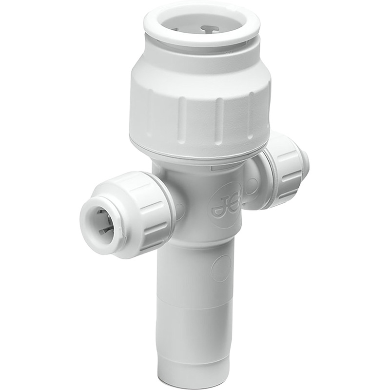 Easily provides a pipework junction at a centralised supply point. Available with direct push-fit or stem inlet connections. JG Speedfit plastic plumbing push-fit manifolds are a durable solution that enables service pipework to be quickly and easily centralised at a single point. Made from polybutylene, the manifolds have a straight-through design and push-fit Twist & LockĀ® connections on all inlets and outlets, for fast and simple installation. Alternatively, there is an option with a stem connection on the main inlet that allows for additional plastic manifolds to be securely connected. Simply push the push-fit fitting fully onto the pipe and twist the plastic nut clockwise to lock in place. To demount the connection, unlock the nut by hand and push the collet towards the body of the push-fit fitting and pull the pipe to release. JG Speedfit is faster to install than traditional methods and is easier to use in confined spaces by removing the need for hot works and tools. Designed, manufactured and assembled in the UK. * Durable polybutylene manifolds * Instant push-fit connections with an additional option that includes a stem type connection for installation flexibility * Install and demount in seconds without tools * Safe flame-free installation, with no hot works, glue or flux * Time saving compared to alternative methods that includes a series of pipes, elbows and tees, which makes installation longer and more complex * Grip & Seal collet with stainless steel teeth and main O-Ring seal * Twist & Lock mechanism secures fitting and adds compression * Non-toxic, resists corrosion and no scale build-up * Compatible with Speedfit PEX and polybutylene plastic pipe (inserts required) and copper pipe * Suitable for hot and cold water and central heating systems * 50yr Manufacturers guarantee | JG Speedfit Manifold 2 Port with Stem 22mm x 10mm in White | Polybutylene