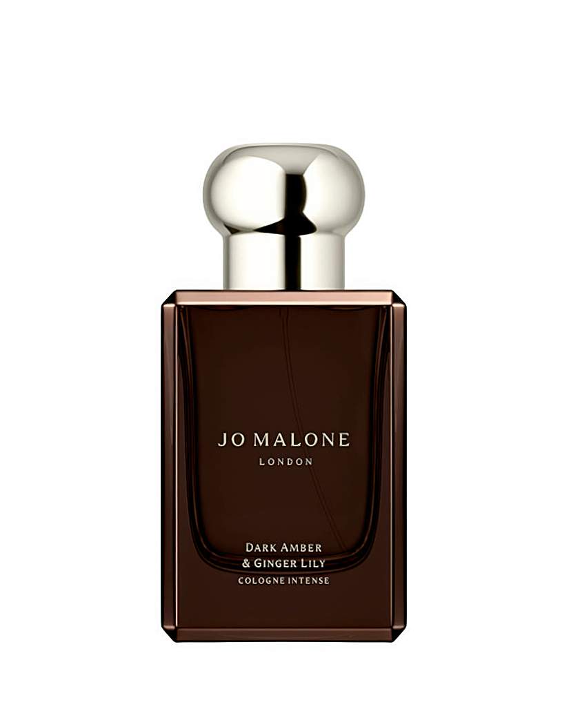 Jo Malone Dark Amber & Ginger Lily Eau de Cologne Intense is an amber, woody fragrance that was launched in 2008. The scent opens with a smoky top note of Black Cardamom, a middle note of Black Orchid provides a floral touch to the fragrance. A base note of Kyara Incense gives a warm finish.