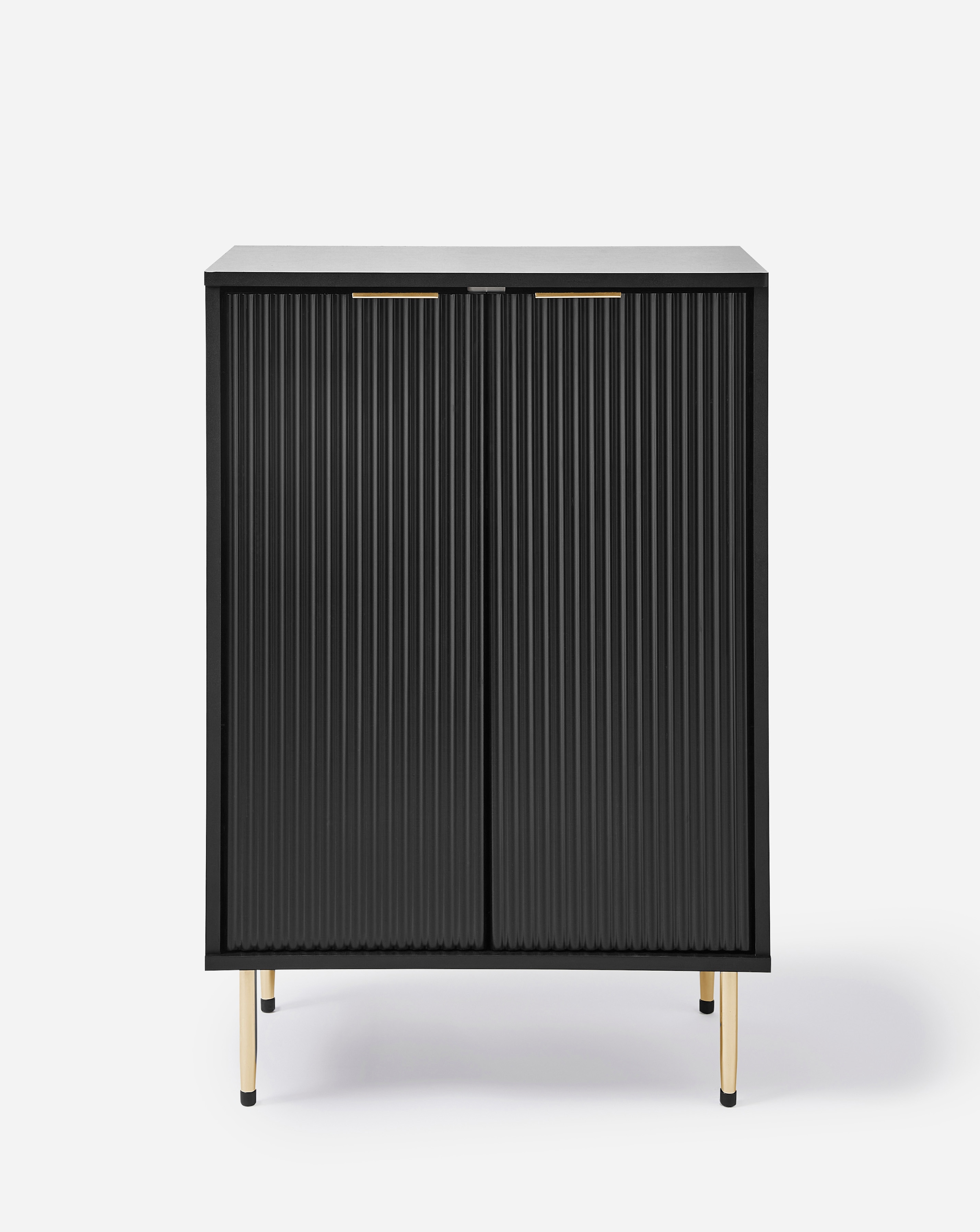 Sidebaord with vertical ribbed design and gold-coloured legs and handles.