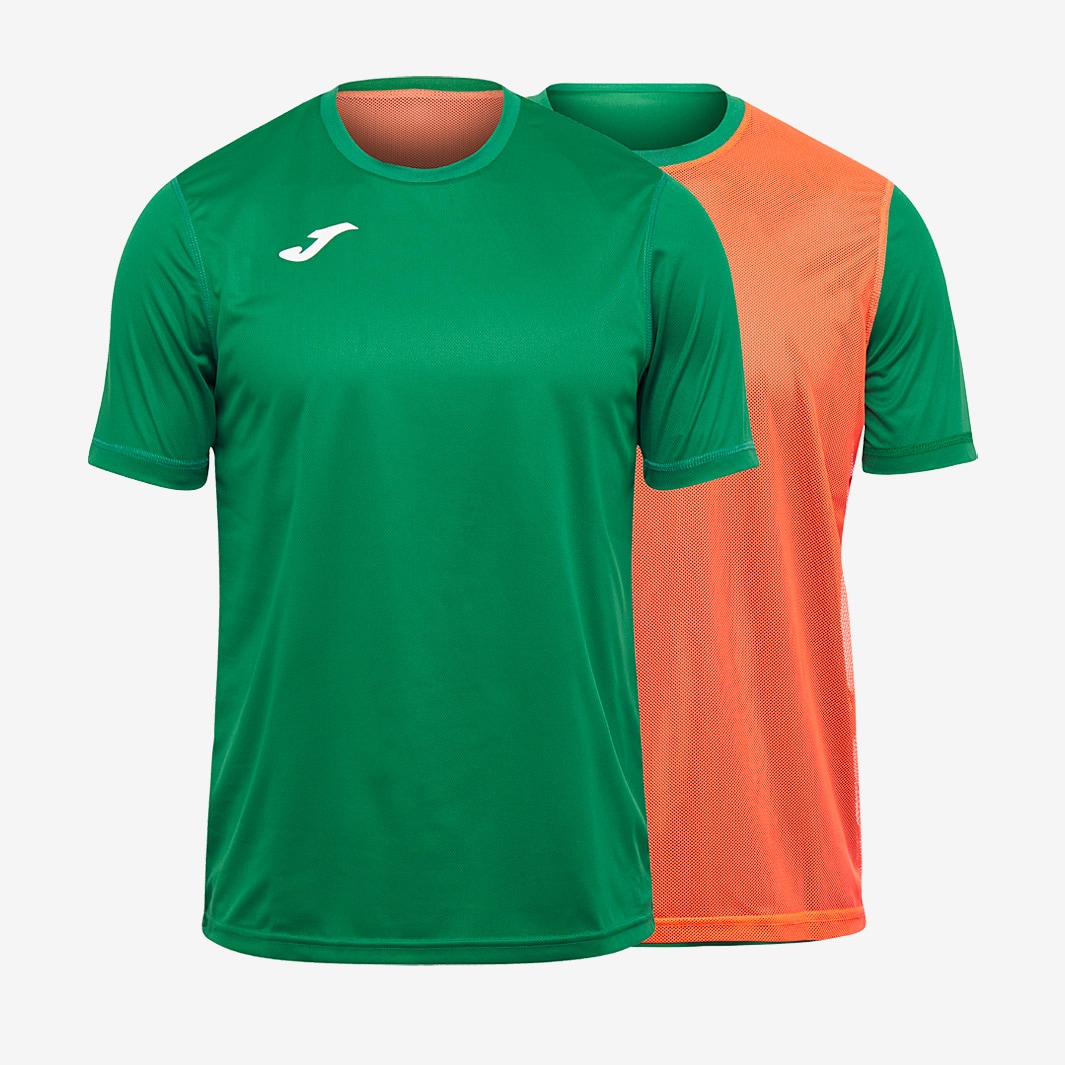 Constructed from lightweight fabric, the Joma Combi Reversible SS Shirt in Green MediumDark Orange Fluor will keep you cool and comfortable. Inspired by designs worn by international and club sides and manufactured to the same specification, the Joma Combi Reversible SS Shirt benefits from sweatwicking fabric to keep you dry and comfortable.Utilising the latest lightweight and durable materials, it features innovative technologies engineered to enhance the performance of your team on the pitch. Short sleeves Joma logo Technical material