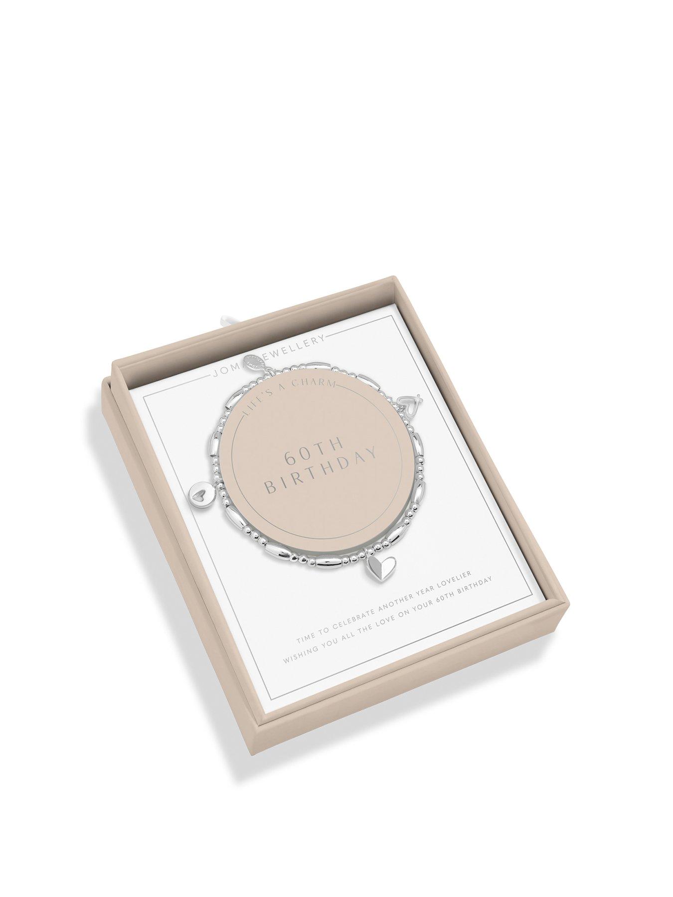 Joma Jewellery LIFES A CHARM 60TH BIRTHDAY Bracelet Say hello to Joma Jewellery's Life's A Charm '60th Birthday' Bracelet In Silver Plating. Threaded with alternating round and oval silver-plated beads, as well as pretty heart charms - to symbolise your love on their special birthday - this sweet little style has been made with love and will arrive perfectly presented in a beautiful buttercream and blush pink gift box. Height: 17.5 CM Fashion Jewellery Type: Bracelets Metal Type: Base Metal