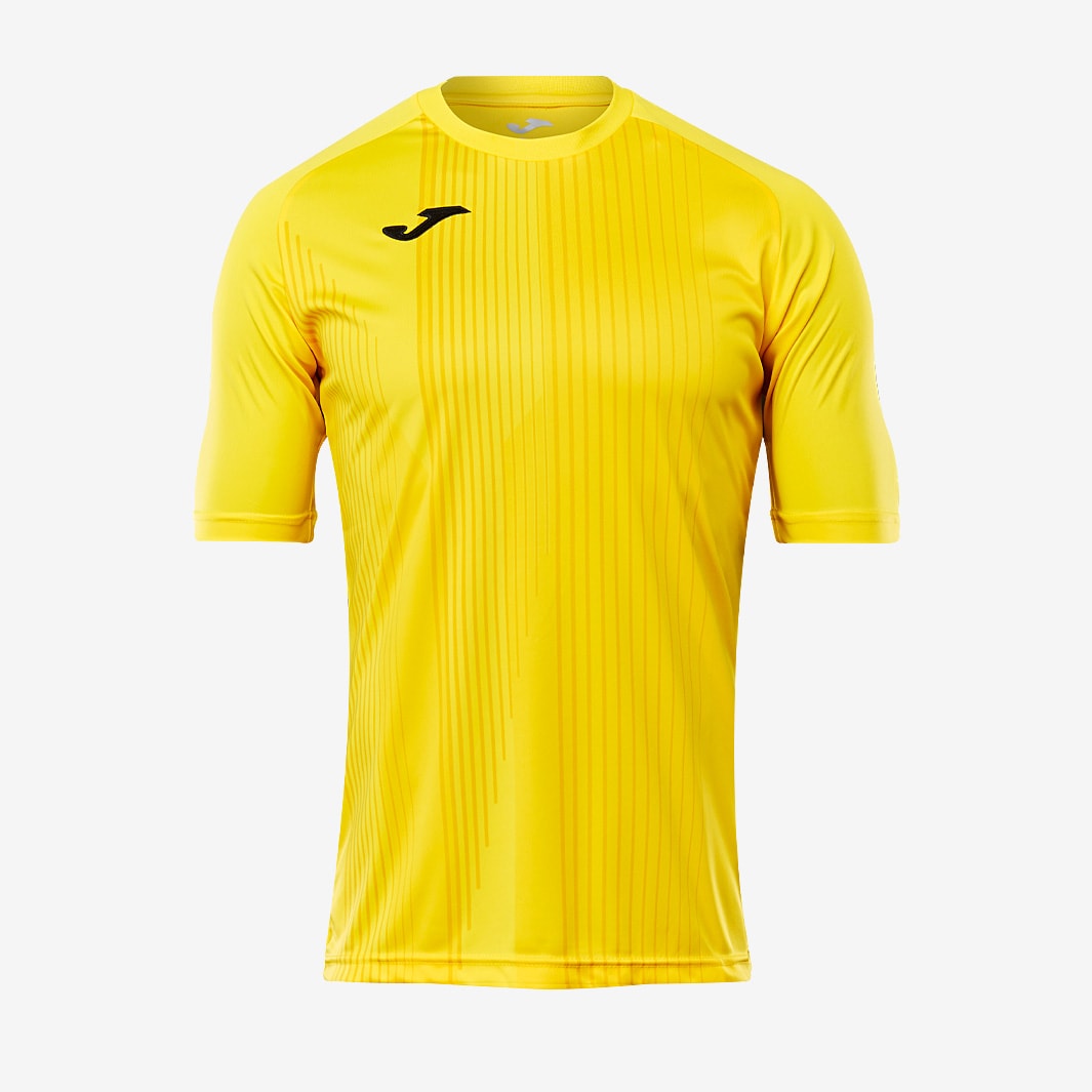 Made using 100 polyester interlock fabric for a naturally soft, and slightly stretchy build, the Joma Tiger SS Shirt in Yellow ups your teams training game with a stylish sublimated design on the front. The Joma Tiger SS Shirt training or match day top has a sleek, lightweight feel, with even the J logo silk screen printed for minimal weight. Breathable mesh in high heat areas lets you push yourself further while a raglan sleeve construction provides improved freedom of movement. Available until late 2025 100 polyester interlock Semi fitted pro style Ultra slim athletic cut nipped in at the waist Mesh fabric in high sweat areas Silk screen printed J logo