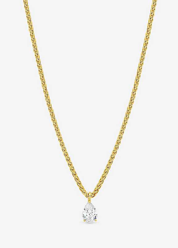 Our 18k Gold Plated Chain and Cubic Zirconia Peardrop Necklace is crafted with care, designed to bring bold elegance to your everyday style. Featuring a striking CZ Crystal made to sparkle and finished in rich 18k gold plating, this statement piece adds a touch of timeless sophistication. It's the perfect addition to any jewellery collection.Fastening: Lobster ClaspWidth dimension: 10mmLength dimension: 457mmMaterial: 18K Gold Plated Base MetalCostume Jewellery | gold plated necklace, gold plated chain necklace, gold chain with pendant, cubic zirconia pendant, teardrop pendant necklace, 18k gold chain, 18k gold plated chain, cubic zirconia necklace