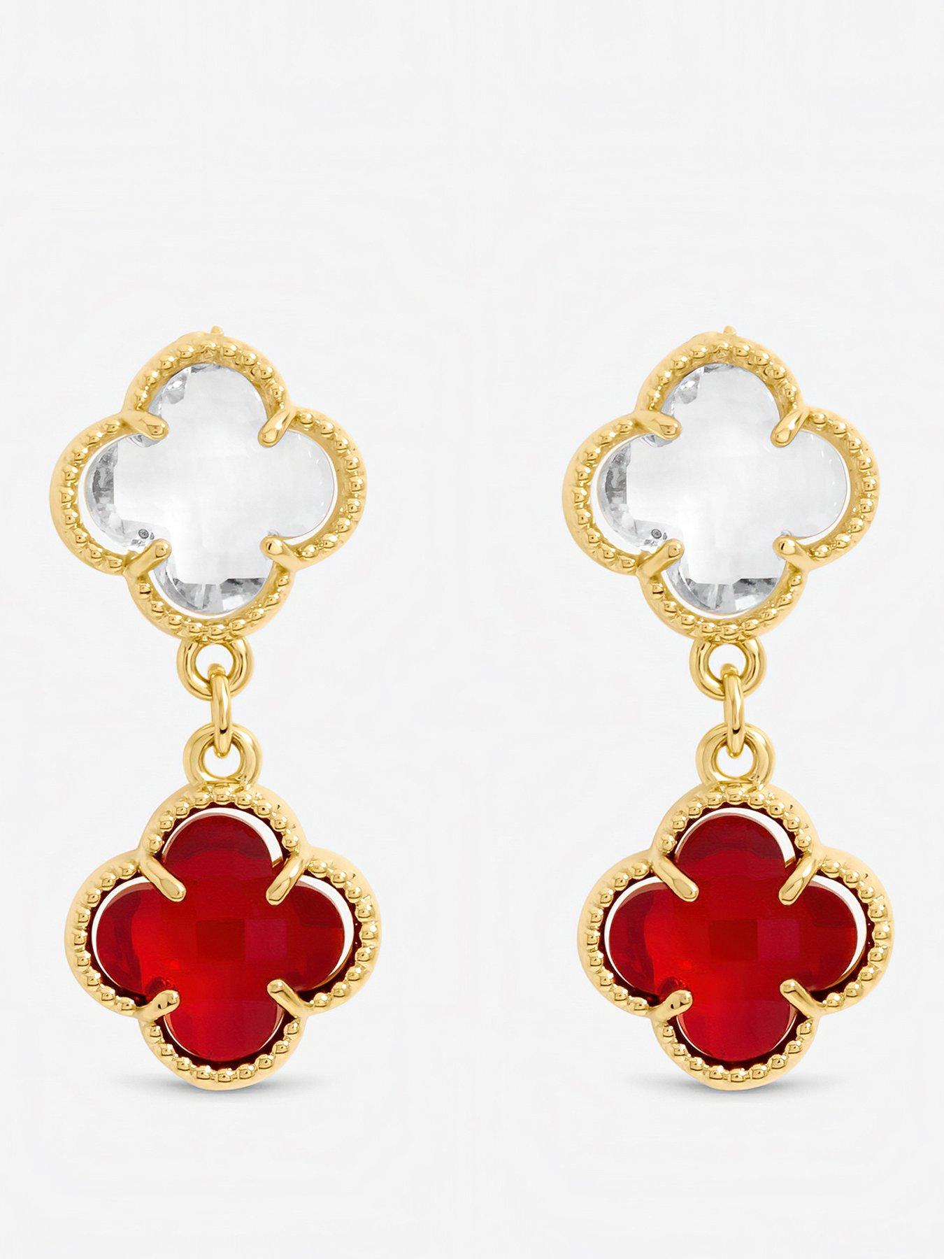 Jon Richard Gold Plated Ruby And Crystal Clover Drop Earrings - Women