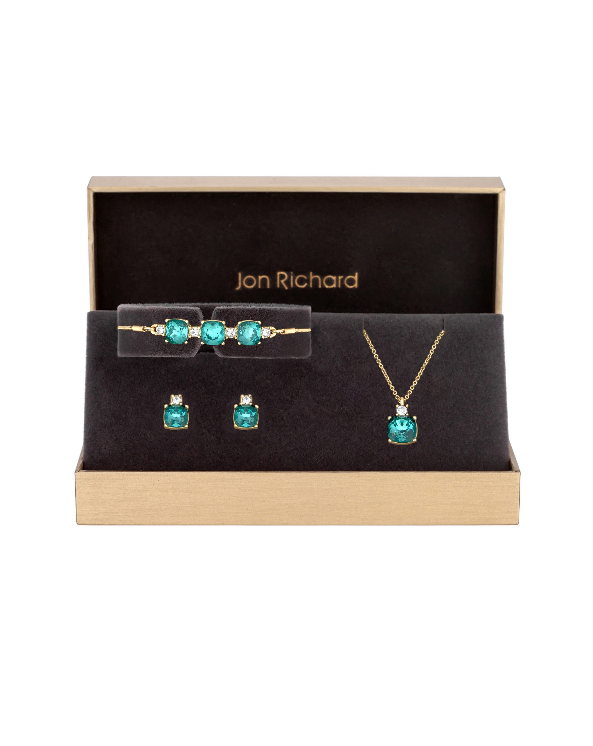 Jon Richard Gold Plated Teal Open Stone Trio Set - Gift Boxed