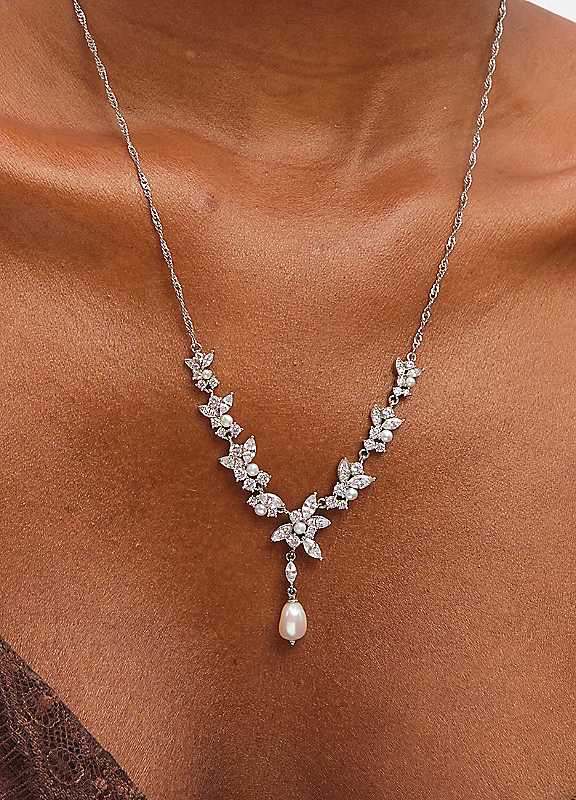 The Jon Richard Rhodium-Plated Crystal and Freshwater Pearl Y Drop Necklace is a sophisticated and graceful addition to any jewellery collection. Featuring sparkling crystals and lustrous freshwater pearls suspended in an elegant Y-shaped design, it catches the light beautifully from every angle. Perfect for both day and evening wear, this necklace adds refined glamour and timeless elegance to the neckline.Fastening: Lobster claspCostume jewelleryRhodium-Plated Base MetalWidth size approx. 16 mmLength size approx. 45 mm | crystal pearl necklace, rhodium plated necklaces, silver pearl necklace, lariat necklace, pearl drop necklace, pearl pendant necklace, crystal pendant necklace, freshwater pearl necklace
