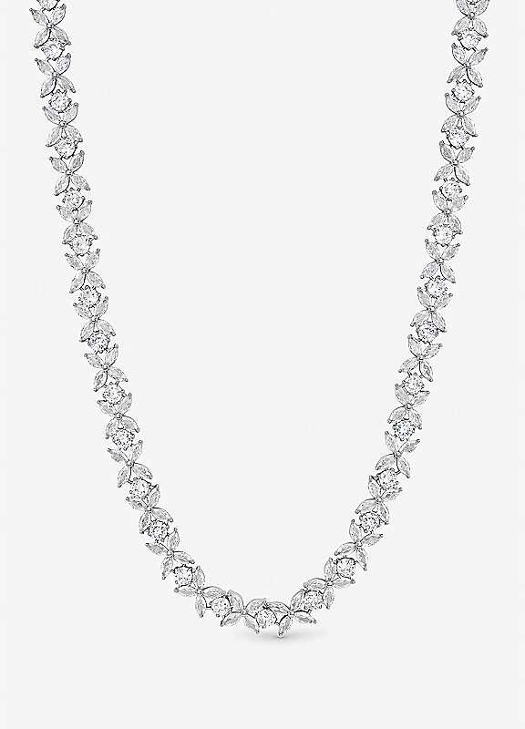 Jon Richard Rhodium Plated Cubic Zirconia Floral Necklace - Silver - Size ONE SIZE