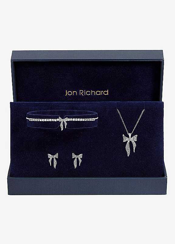 Jon Richard Silver Plated and Pave Bow Trio Set - Gift Box - Size ONE SIZE