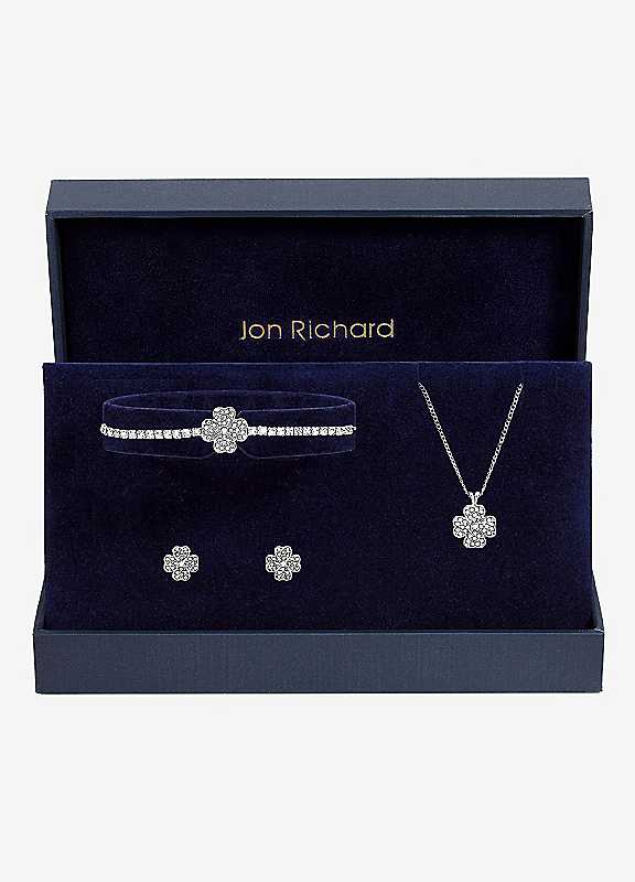 Jon Richard Silver Plated and Pave Clover Trio Set - Gift Box - Size ONE SIZE