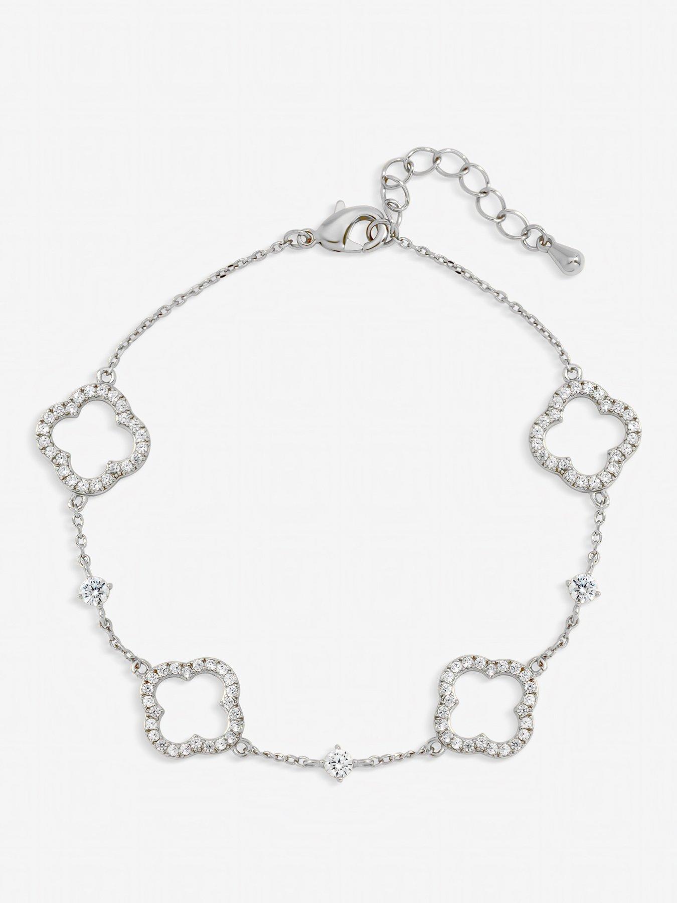 Jon Richard Silver Plated Pave And Crystal Open Clover Bracelet - Women