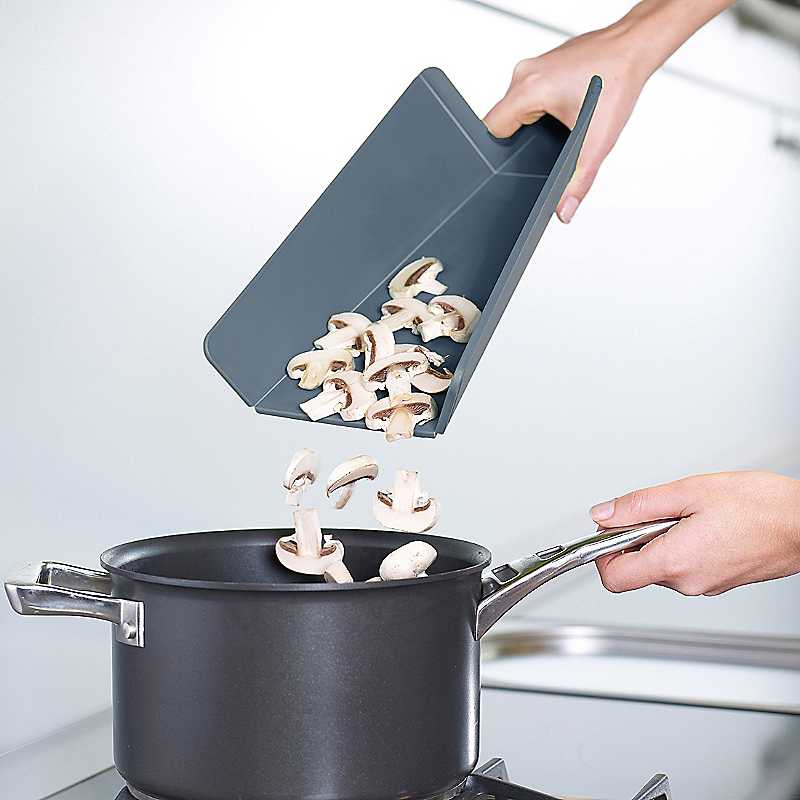 Chop2PotTM Plus is the original folding chopping board that makes food transfer easy. Laid flat, it provides a knife-friendly cutting surface for all types of food preparation. But when the handle is squeezed, the sides of the board fold up, forming a convenient chute down which chopped food or waste can be neatly guided. It features durable 'living-hinge'TM technology to achieve its transformation and non-slip feet. Joseph Joseph Chop2PotTM Features: Dishwasher safe Polypropylene Cutting area: 26.3 x 20.8 cm (10.3 x 8.5 inches)