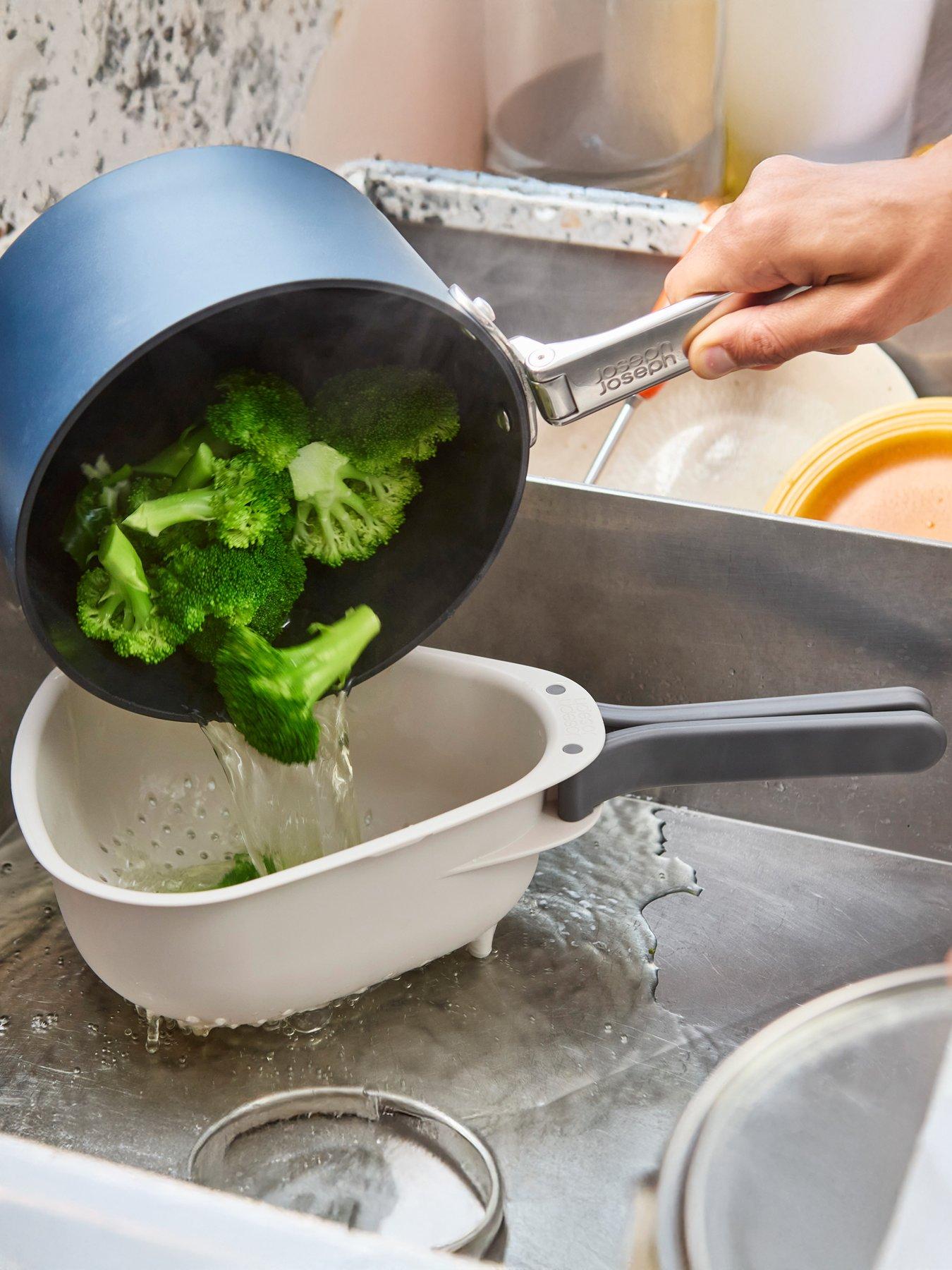 Joseph Joseph Droplet Large White Colander With Folding Handle Droplet Is A Clever Colander That Features Innovative Handles That Fold To Save Space In Your Kitchen Cupboard. Its Generous Size Is Perfect For Draining Or Rinsing Bulkier Items Of Food Like Vegetables Or Pasta. After Use, Simply Fold The Handles In For Space-Saving Storage. Material Content: Pp Homopolymer 100%