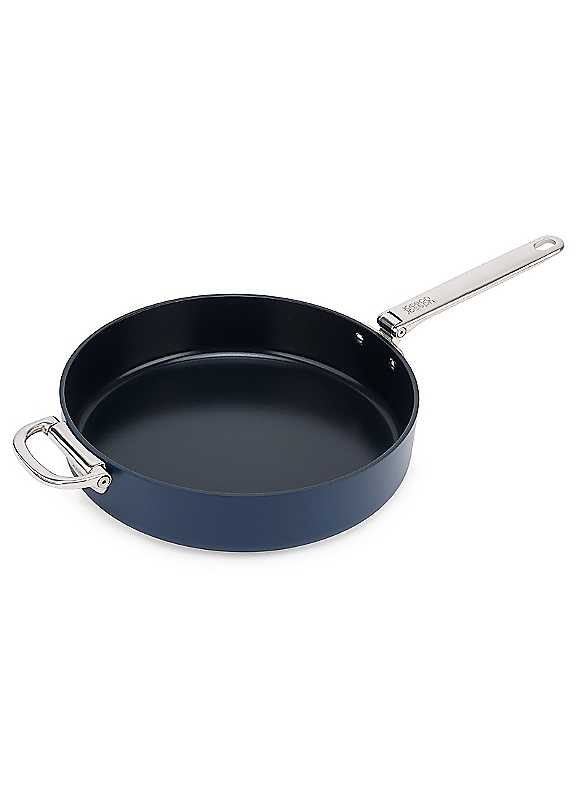 Goodbye clutter, hello Space! This 30 cm (12in) non-stick frying pan has a clever, folding stainless-steel handle that saves up to 50% more space than a standard pan when stored. Engineered to last, the handle features our patented and fail-safe Swing LockTM Mechanism that locks the handle securely into position during use and optimises space when folded. Opposite, there's a handy, folding helper handle too, giving you more lifting and carrying support when you need it. When it comes to cooking performance there's no compromise either. The professional quality, heavy-gauge aluminium body ensures even heat distribution that eliminates hot spots and is built to last. The high performance, ceramic non-stick coating is super durable, easy to clean and allows you to achieve exceptional cooking results. It's healthier to cook with too as it's free from PTFE, PFAS, PFOA, Lead and Cadmium, which means you can prepare all your favourite recipes with confidence.Suitable for all hob types, including induction, this pan is part of the Space cookware range - created for cooks, made for storage.Professional quality, heavy-gauge aluminium body for durability & even heatingHigh-performance, healthy Sol-gel ceramic non-stick coating that's free from PTFE, PFAS, PFOA, Lead & CadmiumFolding stainless-steel handle saves up to 50% more space than a standard pan & 20-year lifetime testedSuitable for all hobs including inductionOven safe up to 232°C (450°F), Gas Mark 866% Aluminium, 34% Stainless Steel
