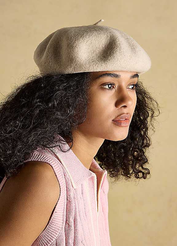 Sophisticated, statement-making and yet fun, a beret will add a chic side to any look. If you haven't got one in amongst your current collection of headwear, the Amelie is a great choice. Crafted from wool, it's as warm as it is soft and will be perfect from the first signs of autumn until the last days of spring. A great choice for town, city, country and beyond. Complete with an internal size adjuster, it's easy to find your perfect fit.Main: 100% WoolHead Band: 100% Polyester | cute beret hat, soft womens hats, solid color hats, casual headwear, fall winter hats, smart casual hat, womens fall hats, beige winter hat, cream beret hat, women's wool beret, beige wooly hat, wool beret hat
