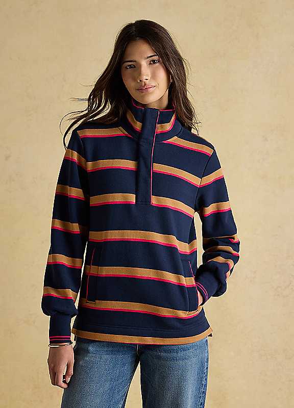 Joules Burnham Navy/Tan Stripe Funnel Neck Quarter Zip Sweatshirt - Size 10