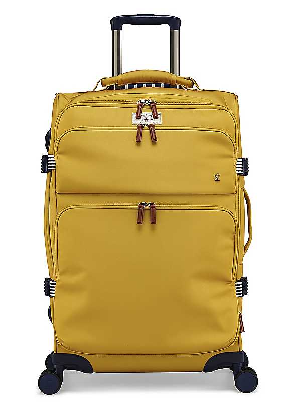 Made for getaways and holidays each and every item from the Joules Travel collection is designed with the aim of making your journey just that little bit more straightforward. Durable, lightweight, identifiable luggage pieces with organised interiors to make packing easier and 360° wheels, which will make racing to the check-in desk a lot easier. Wipe clean with a damp cloth Main: 100% Polyester Lining: 100% RPET (made from recycled plastic bottles) Dimensions: H73cm x W49cm x H30cm | trolley travel bags, travel bags wheels