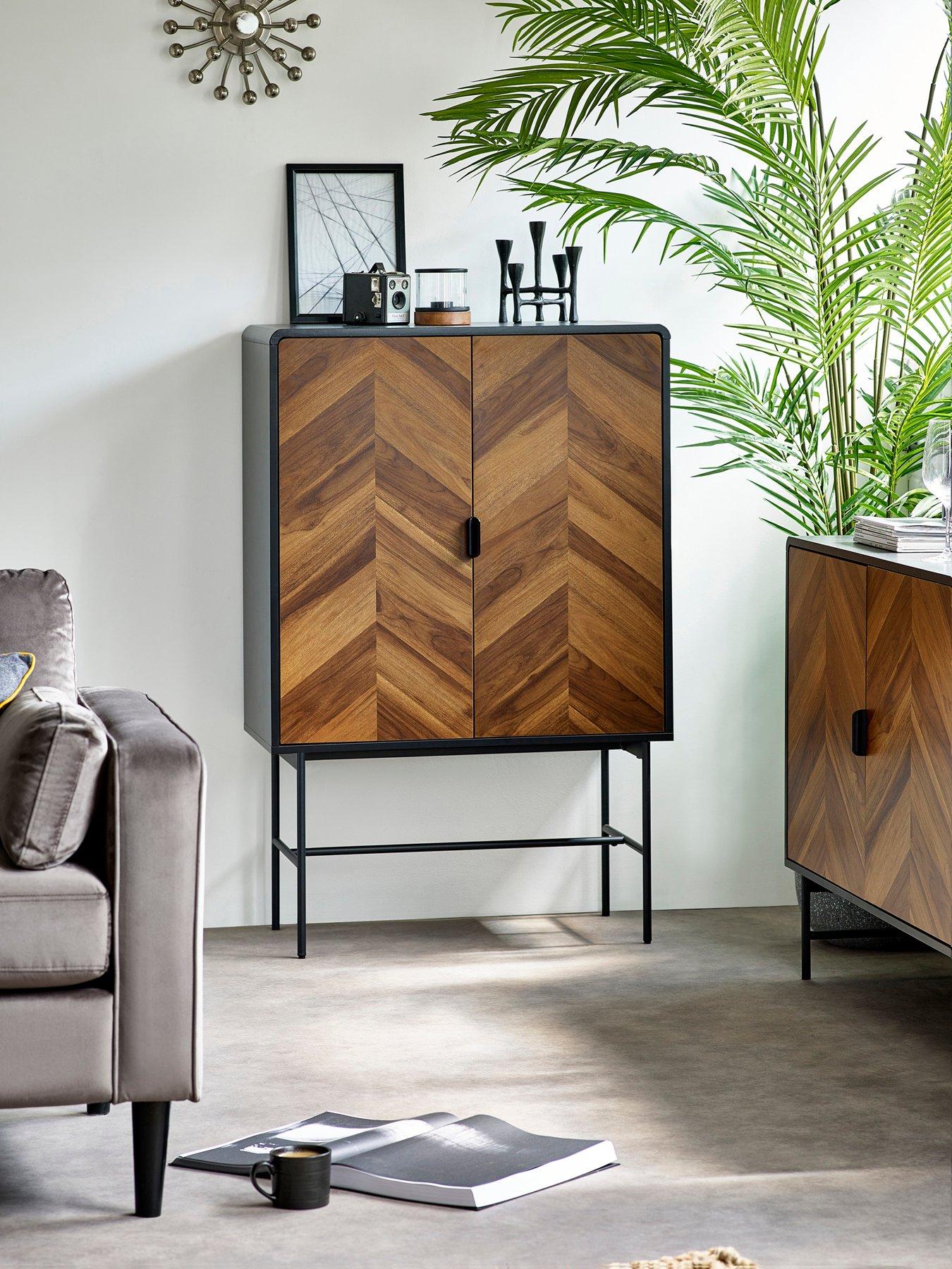 Julian Bowen Alvin Black And Natural Wood-effect 2 Door Storage Cabinet Add a stylish touch to your home with this contemporary storage cabinet that perfectly blends design and function. Featuring bold chevron wood-effect doors framed by smooth black edges and sleek black edge handles, it brings subtle texture and refined detail to your space. Gently curved edges give it a softer, modern look. Behind the two doors, a fixed shelf offers plenty of room to organise books, dining essentials, or everyday items with ease. Supported by slim black metal legs, it delivers a lightweight feel that complements both modern and industrial interiors. Ideal for living rooms or dining areas. Self-assembly required. Assembly: Self Assembly Depth: 40 CM Height: 122 CM Material Content: MDF board with melamine&black paper,metal tube in matt black rough powder coating Width: 80 CM Finish Type: Painted Number of Doors: 2 door Number of Shelves: 1 Adjustable: N Eye-catching chevron natural wood-effect doors. Smooth black edges with sleek handles. Two doors reveal roomy, easy storage. H 122 x W 80 x D 40 cm; 25.5kg. Assembly required Number of Doors: 2 Number of Internal Shelves: 1 Shelf Type: Fixed Adjustable Shelf: N Removable Shelves: N Pre-Drilled Holes: Y