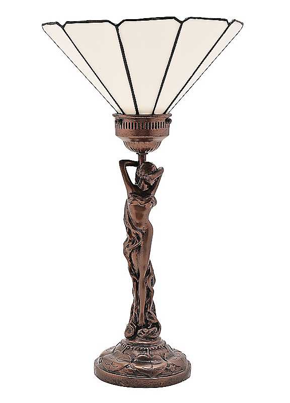 Illuminate your home with the Juliana Art Nouveau Bronze Figurine Upright Lamp, a captivating blend of light and artistry. This enchanting piece features a bronze-toned female figure gracefully supporting a vibrant Tiffany-style stained glass shade, casting a warm and inviting glow. Whether given as a thoughtful gift or used to enhance your own d©cor, it adds a touch of charm and elegance to any space.Artistic bronze-toned figurineTiffany-style stained glass shadeUnique blend of light and sculpturePerfect for giftingTimeless Art Nouveau designDimensions approx. 39.6 x 21.5 x 21.5 cm | unusual table lamps living room, table lamps bedroom, decorative lamps living room, table lamps living room, glass lamps living room, art nouveau table lamp, coloured glass table lamp, antique bronze lamp, tiffany glass lamp, room decoration lights, sculptural table lamp, bronze table lamp, tiffany bedside lamps, tiffany style lamp, tiffany antique lamps, aesthetic table lamp, bronze table lamps living room