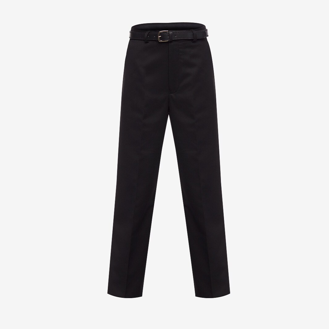 Junior Boys Falmouth Trousers in Black, a traditional pair of trousers with rounded hips and a flat front. With two side pockets, a buttonup back pocket and an additional zipped security pocket, Junior Boys Falmouth Trousers have space for all your essentials and personal belongings. For boys in Year 7 to Year 11 Flat front Internal waist adjuster Hook and bar fastening with button extension Two side pockets plus back pocket with button Security pocket with zip Belt and belt loops Spare button Maxtech stain resistance Material 65 polyester, 35 viscose Washing 40 wash