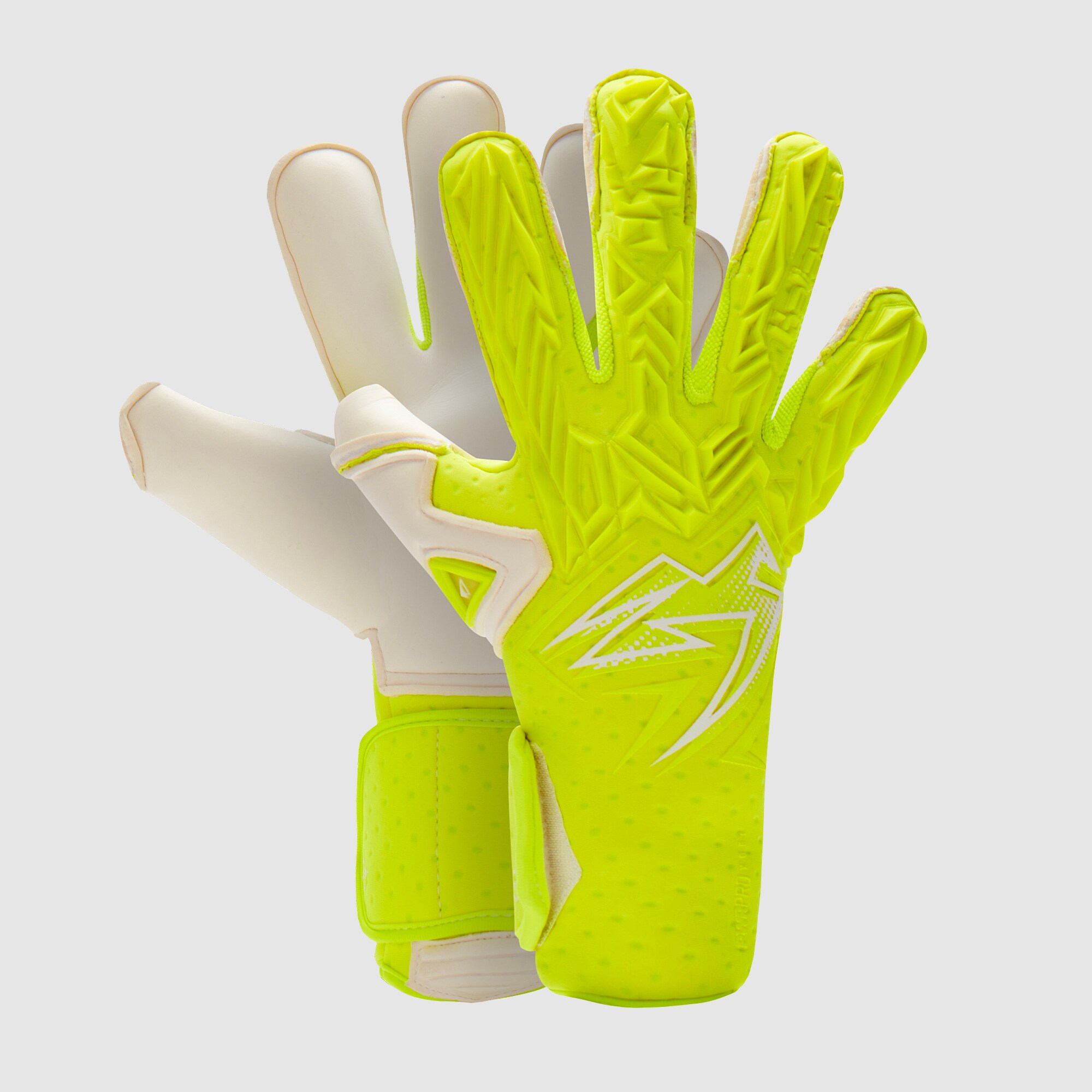 Be the dominant force in your box wearing Kaliaaer PWRPRO Sekure goalkeeper gloves in Highlighter Yellow. Designed for fearless keepers who boss their area with big punches and quick reaction saves, the PWRPRO Sekure features Kaliaaers FLASHFRAME Aerfin backhand, which cuts through the air for faster hand speed as you show your agility.On the palm, its gameready Ultra Charge Pro latex for supreme grip and durability in all weather conditions. This edition uses the popular Sekure hybrid cut, which offers the ultimate combination of a snug fit and maximum balltolatex contact. The semirolled fingers and extended thumb wrap make a huge difference to ball handling, working together when catching and handling the ball to give you complete control.The gloves AERFLO smart fabric body constantly recycles air for a fresh feel all match long, minimising distractions during play. At the wrist, the LockON 2.0 SPEED SYSTEM offers support while allowing a customised fit, with antiabrasive reinforcement on the sides stabilising the hand and reducing irritation. AERFLO smart fabric body Keeps hands at the optimal temperature while allowing constant recycling of air Double elastane side panels for speed entry FLASHFRAME AERfin Technology Cuts through air quicker for faster response speed 4mm ULTRA CHARGE PRO PRECHARGED palm latex Ready to go straight from the start Allweather Performs well in wet and dry conditions Profi Grade latex Providing supreme grip and durability Antiabrasion wrist High density, antiabrasion, palm side wrist section aids hand stabilisation while reducing latex friction LockON 2.0 SPEED SYSTEM Dynamic wrist and closure creating a customised fit while providing a lock on fit HiDri Advanced AntiBacterial Lining SEK Sekure CUT Combining streamlined fit with the key attributes of modern hybrid glove engineering. Fit, feel, and functional balltohand contact