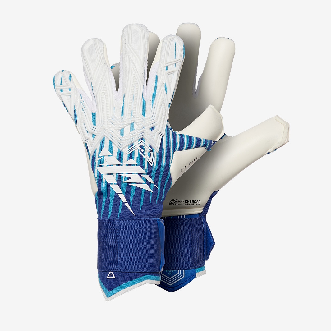 Command your box with authority wearing Kaliaaer REGEN Pro Cobalt II TouchFeel goalkeeper gloves in Cobalt BlueWhite. Designed to meet the demands of professional keepers, the Pro TF features the Reverse Sekure cut, combining negative and rollfinger elements for a balance between surface area coverage and a snug feel.The REGEN editions knitted XLR8AER glove body is climateadaptive, opening to allow airflow only when needed, keeping your hands at the optimal temperature throughout play.Then theres TouchFeel 3.0, Kaliaaers latest pressuresensitive grip technology. Responding to the force of your grip, it moulds to your hand as you handle the ball, giving greater tactility and control to confidently take catches and launch counterattacks.At the wrist, the LockON system combines an extended glove body with a strap closure for easy entry and adjustment. PWRGRID backhand chassis Perfect balance of power, speed, and agility XLR8AER climateadaptive KNITTED BACKHAND Intelligently opens airflow as needed, regulating temperature to keep you cool TOUCHFEEL 3.0 Pressuresensitive materials dynamically mould to your hand, responding in real time to grip force for enhanced tactile feedback, control, and stability PRECHARGED palm latex Ready to go straight from the start Allweather Performs well in wet and dry conditions Profi Grade latex Providing supreme grip and durability LockON Elastic Wrist Strap HiDri Advanced AntiBacterial Lining Reverse Sekure CUT The streamlined feel of a neg cut with the ball to hand coverage associated with a rollfinger