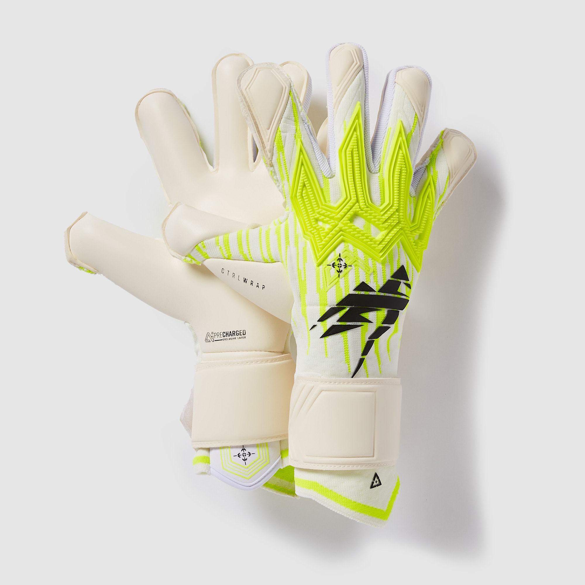 Command your box like the elite wearing Kaliaaer REGEN Pro JB1 goalkeeper gloves in WhiteYellow, as worn by Jack Butland. Designed to meet the demands of professional keepers, the Pro JB1 features Butlands preferred 3DXi+ cut, which combines semirolled outer fingers with streamlined positivecut middle fingers for a snug feel and maximum ball contact where it counts.The REGEN editions knitted XLR8AER glove body is climateadaptive, opening to allow airflow only when needed, keeping your hands at the optimal temperature throughout play.At the wrist, the LockON system combines an extended glove body with a strap closure for easy entry and adjustment. As worn by Jack Butland PWRGRID backhand chassis Perfect balance of power, speed, and agility XLR8AER climateadaptive KNITTED BACKHAND Intelligently opens airflow as needed, regulating temperature to keep you cool PRECHARGED palm latex Ready to go straight from the start Allweather Performs well in wet and dry conditions Profi Grade latex Providing supreme grip and durability LockON Elastic Wrist Strap HiDri Advanced AntiBacterial Lining 3DXi+ CUT Semiroll outer fingers and precurved, streamlined positivecut middle fingers give feel of a neg cut with the balltohand coverage of a rollfinger