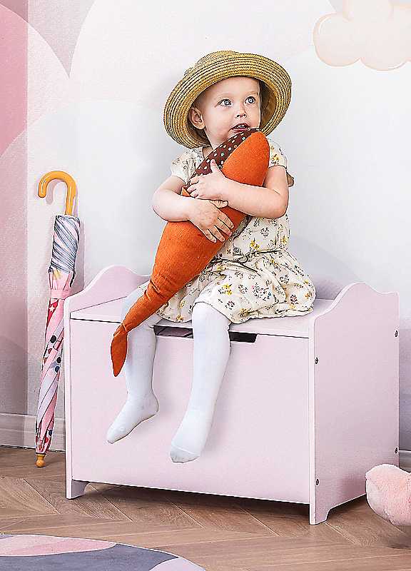 Practical, sturdy, and child-friendly - this kids' toy box is the perfect storage solution to keep their space tidy and organised. Keep your child's room neat and organised with this large toy storage box. There's plenty of space for toys, books, shoes, and more, helping to create a clutter-free play area. The safety hinge design keeps the lid securely open while in use - preventing it from accidentally slamming shut and protecting little fingers from harm. Crafted from sturdy MDF, this toy chest is built for everyday use. The smooth, wipe-clean surface ensures hygiene and easy maintenance.Recommended Age: 3+ yearsMaximum Load Capacity: 40 kgAssembly: Easy to assembleOverall dimensions approx. 48H x 60L x 40W cmInner storage dimensions approx. 33.5H x 57.5L x 37.5W cm