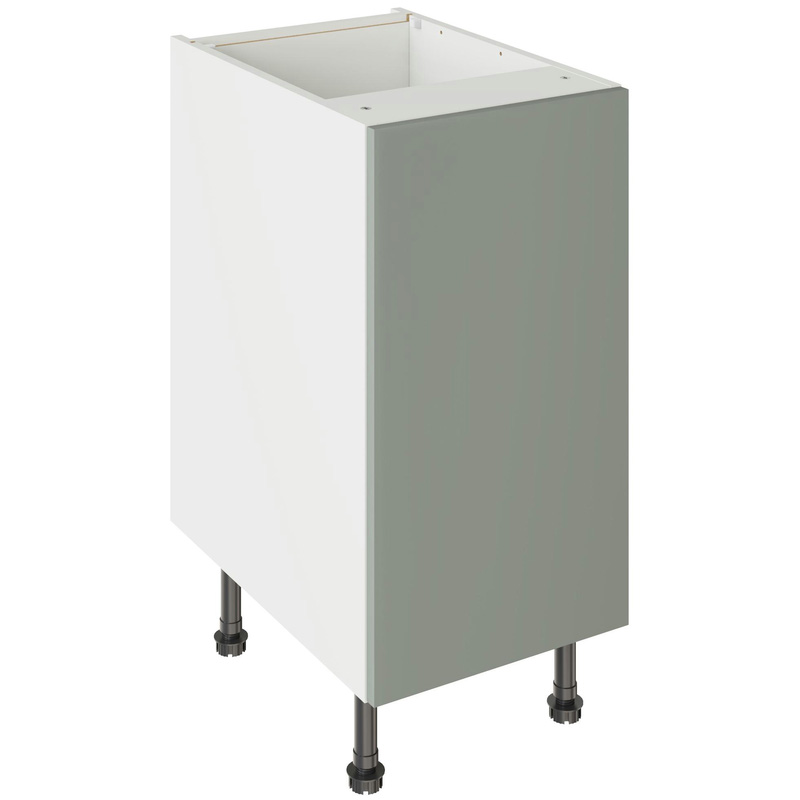 Assembling your kitchen cabinet has never been so easy. With this Kitchen Kit flatpack unit, you won't need to follow pages and pages of complicated instructions. Cabinets can be put together in lightning quick time with our cam and dowel quick-build design. Doors can be hinged on the left or right side of this kitchen unit to best suit your layout, with a soft-close function that ensures they'll never slam shut loudly again. Four adjustable legs make it easy to achieve maximum stability for base units, while a 49 mm service void allows you plenty of space for concealing pipes or wiring. Personalise your kitchen by choosing from a wide range of colours, sizes, and door styles. Whether you prefer the handleless J-Pull, the classic Shaker, or the modern Slab design, you can create a look you’ll love. * Delivered flat-packed with cabinet, door and hinges included * Cam and Dowel Quick-build design * Simply glue and click together to form a strong fixing - fast! * Doors can be hinged on the left or right side to suit your configuration * Fully integrated soft-close hinges - no more doors slamming shut * 150 mm adjustable legs to ensure maximum stability * 49 mm rear service void for concealing pipes, wiring and other essentials * 18 mm MFC cabinet with 8 mm back for rigidity * 18mm Door drilled ready to hang * FIRA Gold certification on doors and cabinets * Door handles, plinths, panels and other accessories sold separately | Kitchen Kit Base Kitchen Cabinet Flatpack Slab Supermatt 400mm in Agave Green