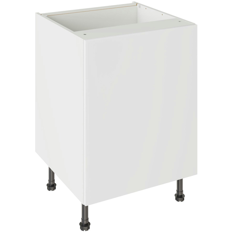 Assembling your kitchen cabinet has never been so easy. With this Kitchen Kit flatpack unit, you won't need to follow pages and pages of complicated instructions. Cabinets can be put together in lightning quick time with our cam and dowel quick-build design. Doors can be hinged on the left or right side of this kitchen unit to best suit your layout, with a soft-close function that ensures they'll never slam shut loudly again. Four adjustable legs make it easy to achieve maximum stability for base units, while a 49 mm service void allows you plenty of space for concealing pipes or wiring. Personalise your kitchen by choosing from a wide range of colours, sizes, and door styles. Whether you prefer the handleless J-Pull, the classic Shaker, or the modern Slab design, you can create a look you’ll love. * Delivered flat-packed with cabinet, door and hinges included * Cam and Dowel Quick-build design * Simply glue and click together to form a strong fixing - fast! * Doors can be hinged on the left or right side to suit your configuration * Fully integrated soft-close hinges - no more doors slamming shut * 150 mm adjustable legs to ensure maximum stability * 49 mm rear service void for concealing pipes, wiring and other essentials * 18 mm MFC cabinet with 8 mm back for rigidity * 18mm Door drilled ready to hang * FIRA Gold certification on doors and cabinets * Door handles, plinths, panels and other accessories sold separately | Kitchen Kit Base Kitchen Cabinet Flatpack Value Slab Matt White 600mm in Snow White