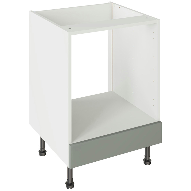 Assembling your oven base unit has never been easier. With this flat pack cabinet from Kitchen Kit, you don't have to read through pages and pages of complicated instructions. Simply glue and click it together to form a strong and reliable fixing - cabinets can be put together in as little as 30 seconds. This doorless oven housing unit comes in a width of 600 mm, offering a sleek and stylish way to incorporate your oven into your kitchen cabinet design. It features four adjustable legs for maximum stability on your floor, and a 49 mm service void for concealing pipes or wiring. If you like handleless doors, you'll love the J-Pull collection from Kitchen Kit. These sleek and stylish doors feature a J-shaped curve at the bottom, which is perfectly shaped for easy opening. They're laminated and edged with PUR adhesive to ensure superior heat and moisture resistance and, with no exterior handles, these cabinets are even easier to keep clean. * Delivered flat-packed * Doorless design with 600 mm width for housing your oven * Quick-build design - assemble your cabinets in as little as 30 seconds * Simply glue and click together to form a strong fixing - fast! * 150 mm adjustable legs to ensure maximum stability * 49 mm rear service void for concealing pipes, wiring and other essentials * FIRA Gold Level H certification on cabinets * Door handles, plinths, panels and other accessories sold separately Assembling your kitchen cabinet has never been so easy. With this Kitchen Kit flatpack unit, you won't need to follow pages and pages of complicated instructions. Cabinets can be put together in lightning quick time with our cam and dowel quick-build design. Doors can be hinged on the left or right side of this kitchen unit to best suit your layout, with a soft-close function that ensures they'll never slam shut loudly again. Four adjustable legs make it easy to achieve maximum stability for base units, while a 49 mm service void allows you plenty of space for concealing pipes or wiring. Personalise your kitchen by choosing from a wide range of colours, sizes, and door styles. Whether you prefer the handleless J-Pull, the classic Shaker, or the modern Slab design, you can create a look you’ll love. * Delivered flat-packed with cabinet, door and hinges included * Cam and Dowel Quick-build design * Simply glue and click together to form a strong fixing - fast! * Doors can be hinged on the left or right side to suit your configuration * Fully integrated soft-close hinges - no more doors slamming shut * 150 mm adjustable legs to ensure maximum stability * 49 mm rear service void for concealing pipes, wiring and other essentials * 18 mm MFC cabinet with 8 mm back for rigidity * 18mm Door drilled ready to hang * FIRA Gold certification on doors and cabinets * Door handles, plinths, panels and other accessories sold separately | Kitchen Kit Flatpack J-Pull Kitchen Cabinet Base Oven Unit Matt Sage 600mm in Green