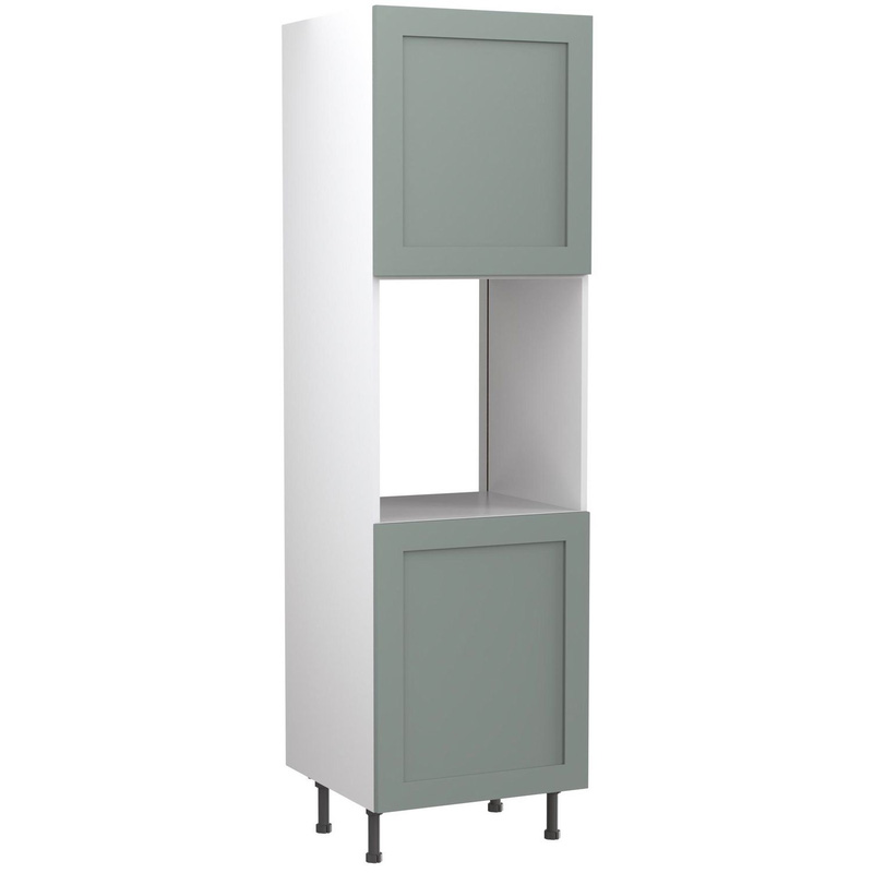 Assembling a tall oven housing unit is made simple with this cabinet from Kitchen Kit. There are no complicated instructions to follow with this flat-packed kit - all you need to do is glue and click it together to form a strong and reliable fixing. Cabinets can be built in as little as 30 seconds. As well as space for your single oven, there are also two cabinets - one above, and one below, helping you make the most of the storage space inside. Also, the soft-close hinges prevent the doors from being slammed shut. This 600 mm wide tall oven housing unit also comes with 150 mm adjustable legs, ensuring you get maximum stability on your kitchen floor. The Kitchen Kit Shaker collection adds contemporary class to any layout. With their bevelled internal profile, Shaker doors feature a two-piece construction - a 15 mm MDF base panel and 4 mm framing, pressed together with a durable foil for long-lasting strength and style. Drawer fronts have an 18 mm slab construction, creating a kitchen that looks every bit as good as it's built. * Delivered flat-packed with cabinet, doors and hinges included * Quick-build design - assemble your cabinets in as little as 30 seconds * Simply glue and click together to form a strong fixing - fast! * Doors can be hinged on the left or right side to best suit your layout * Fully integrated soft-close hinges - no more doors slamming shut * 600 mm wide doorless area for housing a single oven * 18 mm MFC cabinet with 8 mm back for rigidity * Two-piece door construction with 15 mm MDF base panel and 4 mm framing * Door's base panel and framing pressed together with durable foil * 150 mm adjustable legs to ensure maximum stability * FIRA Gold certification on doors and cabinets * Door handles, plinths, panels and other accessories sold separately Assembling your kitchen cabinet has never been so easy. With this Kitchen Kit flatpack unit, you won't need to follow pages and pages of complicated instructions. Cabinets can be put together in lightning quick time with our cam and dowel quick-build design. Doors can be hinged on the left or right side of this kitchen unit to best suit your layout, with a soft-close function that ensures they'll never slam shut loudly again. Four adjustable legs make it easy to achieve maximum stability for base units, while a 49 mm service void allows you plenty of space for concealing pipes or wiring. Personalise your kitchen by choosing from a wide range of colours, sizes, and door styles. Whether you prefer the handleless J-Pull, the classic Shaker, or the modern Slab design, you can create a look you’ll love. * Delivered flat-packed with cabinet, door and hinges included * Cam and Dowel Quick-build design * Simply glue and click together to form a strong fixing - fast! * Doors can be hinged on the left or right side to suit your configuration * Fully integrated soft-close hinges - no more doors slamming shut * 150 mm adjustable legs to ensure maximum stability * 49 mm rear service void for concealing pipes, wiring and other essentials * 18 mm MFC cabinet with 8 mm back for rigidity * 18mm Door drilled ready to hang * FIRA Gold certification on doors and cabinets * Door handles, plinths, panels and other accessories sold separately | Kitchen Kit Flatpack Shaker Kitchen Cabinet Single Oven Unit Matt Sage 600mm in Green
