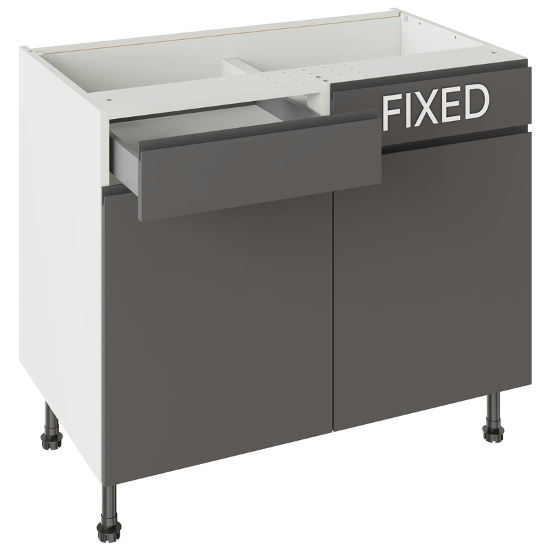 Assembling your kitchen cabinet has never been so easy. With this Kitchen Kit flatpack unit, you won't need to follow pages and pages of complicated instructions. Cabinets can be put together in lightning quick time with our cam and dowel quick-build design. The soft-close drawer runners ensure a smooth and silent action, adding a touch of luxury to your kitchen. Four adjustable legs make it easy to achieve maximum stability for base units, while a 49 mm service void allows you plenty of space for concealing pipes or wiring. Personalise your kitchen by choosing from a wide range of colours, sizes, and door styles. Whether you prefer the handleless J-Pull, the classic Shaker, or the modern Slab design, you can create a look you’ll love. * Delivered flat-packed with cabinet, door and hinges included * Cam and Dowel Quick-build design * Simply glue and click together to form a strong fixing - fast! * Soft Close Hafele drawer boxes. * Fully integrated soft-close hinges - no more doors slamming shut * 150 mm adjustable legs to ensure maximum stability * 49 mm rear service void for concealing pipes, wiring and other essentials * 18 mm MFC cabinet with 8 mm back for rigidity * FIRA Gold certification on doors and cabinets * Door handles, plinths, panels and other accessories sold separately | Kitchen Kit J-Pull Drawerline Base Cabinet Flatpack Gloss 1000mm in Graphite
