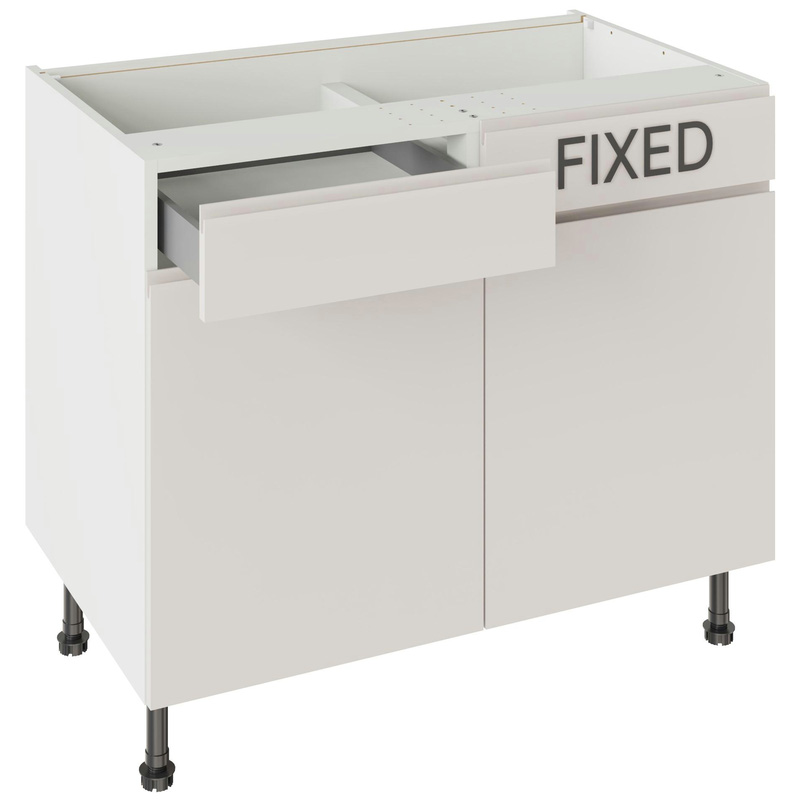 Assembling your kitchen cabinet has never been so easy. With this Kitchen Kit flatpack unit, you won't need to follow pages and pages of complicated instructions. Cabinets can be put together in lightning quick time with our cam and dowel quick-build design. The soft-close drawer runners ensure a smooth and silent action, adding a touch of luxury to your kitchen. Four adjustable legs make it easy to achieve maximum stability for base units, while a 49 mm service void allows you plenty of space for concealing pipes or wiring. Personalise your kitchen by choosing from a wide range of colours, sizes, and door styles. Whether you prefer the handleless J-Pull, the classic Shaker, or the modern Slab design, you can create a look you’ll love. * Delivered flat-packed with cabinet, door and hinges included * Cam and Dowel Quick-build design * Simply glue and click together to form a strong fixing - fast! * Soft Close Hafele drawer boxes. * Fully integrated soft-close hinges - no more doors slamming shut * 150 mm adjustable legs to ensure maximum stability * 49 mm rear service void for concealing pipes, wiring and other essentials * 18 mm MFC cabinet with 8 mm back for rigidity * FIRA Gold certification on doors and cabinets * Door handles, plinths, panels and other accessories sold separately | Kitchen Kit J-Pull Drawerline Base Cabinet Flatpack Gloss 1000mm in Light Grey