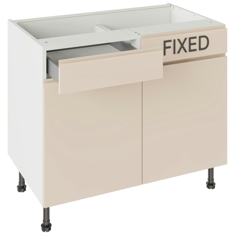 Assembling your kitchen cabinet has never been so easy. With this Kitchen Kit flatpack unit, you won't need to follow pages and pages of complicated instructions. Cabinets can be put together in lightning quick time with our cam and dowel quick-build design. The soft-close drawer runners ensure a smooth and silent action, adding a touch of luxury to your kitchen. Four adjustable legs make it easy to achieve maximum stability for base units, while a 49 mm service void allows you plenty of space for concealing pipes or wiring. Personalise your kitchen by choosing from a wide range of colours, sizes, and door styles. Whether you prefer the handleless J-Pull, the classic Shaker, or the modern Slab design, you can create a look you’ll love. * Delivered flat-packed with cabinet, door and hinges included * Cam and Dowel Quick-build design * Simply glue and click together to form a strong fixing - fast! * Soft Close Hafele drawer boxes. * Fully integrated soft-close hinges - no more doors slamming shut * 150 mm adjustable legs to ensure maximum stability * 49 mm rear service void for concealing pipes, wiring and other essentials * 18 mm MFC cabinet with 8 mm back for rigidity * FIRA Gold certification on doors and cabinets * Door handles, plinths, panels and other accessories sold separately | Kitchen Kit J-Pull Drawerline Base Cabinet Flatpack Matt 1000mm in Cashmere