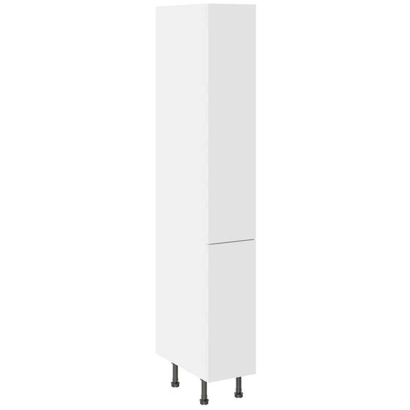 Assembling your kitchen cabinet has never been so easy. With this Kitchen Kit flatpack unit, you won't need to follow pages and pages of complicated instructions. Cabinets can be put together in lightning quick time with our cam and dowel quick-build design. Doors can be hinged on the left or right side of this kitchen unit to best suit your layout, with a soft-close function that ensures they'll never slam shut loudly again. Four adjustable legs make it easy to achieve maximum stability for base units, while a 49 mm service void allows you plenty of space for concealing pipes or wiring. Personalise your kitchen by choosing from a wide range of colours, sizes, and door styles. Whether you prefer the handleless J-Pull, the classic Shaker, or the modern Slab design, you can create a look you’ll love. * Delivered flat-packed with cabinet, door and hinges included * Cam and Dowel Quick-build design * Simply glue and click together to form a strong fixing - fast! * Doors can be hinged on the left or right side to suit your configuration * Fully integrated soft-close hinges - no more doors slamming shut * 150 mm adjustable legs to ensure maximum stability * 49 mm rear service void for concealing pipes, wiring and other essentials * 18 mm MFC cabinet with 8 mm back for rigidity * 18mm Door drilled ready to hang * FIRA Gold certification on doors and cabinets * Door handles, plinths, panels and other accessories sold separately | Kitchen Kit Larder Cabinet Flatpack Value Slab Matt White 300mm in Snow White