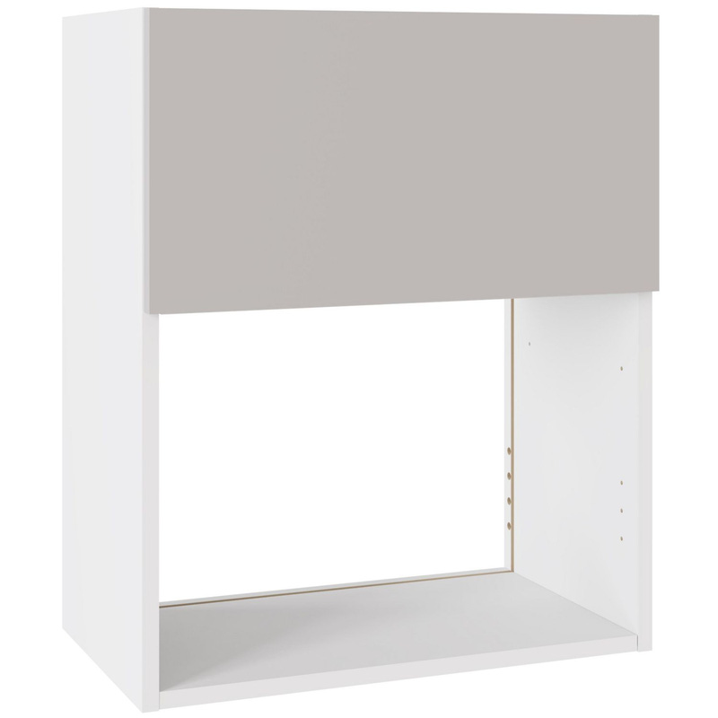 Assembling your kitchen cabinet has never been so easy. With this Kitchen Kit flatpack unit, you won't need to follow pages and pages of complicated instructions. Cabinets can be put together in lightning quick time with our cam and dowel quick-build design. This kitchen wall unit features a concealed adjustable hanging bracket, helping you customise your layout exactly the way you want it. An adjustable shelf gives you even more flexibility for storage, and the doors can be hinged on the left or right side to best suit your configuration. Soft-close hinges ensure a smooth and quiet closure - no more doors slamming shut. Personalise your kitchen by choosing from a wide range of colours, sizes, and door styles. Whether you prefer the handleless J-Pull, the classic Shaker, or the modern Slab design, you can create a look you’ll love. * Delivered flat-packed with cabinet, door and hinges included * Cam and Dowel Quick-build design * Simply glue and click together to form a strong fixing - fast! * Doors can be hinged on the left or right side to suit your configuration * Fully integrated soft-close hinges - no more doors slamming shut * Adjustable concealed hanging bracket for maximum customisation * Adjustable shelf to make the most of your storage space * 18 mm MFC cabinet with 8 mm back for rigidity * 18mm Door drilled ready to hang * FIRA Gold certification on doors and cabinets * Door handles, plinths, panels and other accessories sold separately | Kitchen Kit Microwave Wall Unit Flatpack Slab Supermatt 600mm in Light Grey