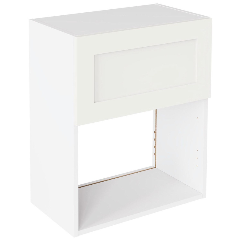 Assembling your kitchen cabinet has never been so easy. With this Kitchen Kit flatpack unit, you won't need to follow pages and pages of complicated instructions. Cabinets can be put together in lightning quick time with our cam and dowel quick-build design. This kitchen wall unit features a concealed adjustable hanging bracket, helping you customise your layout exactly the way you want it. An adjustable shelf gives you even more flexibility for storage, and the doors can be hinged on the left or right side to best suit your configuration. Soft-close hinges ensure a smooth and quiet closure - no more doors slamming shut. Personalise your kitchen by choosing from a wide range of colours, sizes, and door styles. Whether you prefer the handleless J-Pull, the classic Shaker, or the modern Slab design, you can create a look you’ll love. * Delivered flat-packed with cabinet, door and hinges included * Cam and Dowel Quick-build design * Simply glue and click together to form a strong fixing - fast! * Doors can be hinged on the left or right side to suit your configuration * Fully integrated soft-close hinges - no more doors slamming shut * Adjustable concealed hanging bracket for maximum customisation * Adjustable shelf to make the most of your storage space * 18 mm MFC cabinet with 8 mm back for rigidity * 18mm Door drilled ready to hang * FIRA Gold certification on doors and cabinets * Door handles, plinths, panels and other accessories sold separately | Kitchen Kit Shaker Microwave Wall Unit Flatpack Matt 600mm in White