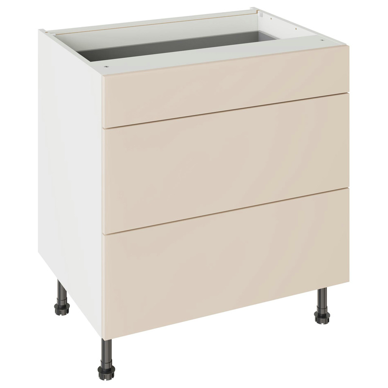 Kitchen Kit Slab 3 Drawer Base Cabinet Supermatt 800mm Flatpack in Cashmere