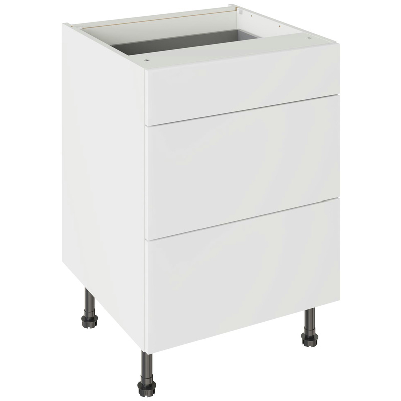 Kitchen Kit Slab 3 Drawer Base Kitchen Cabinet Supermatt 600mm in White