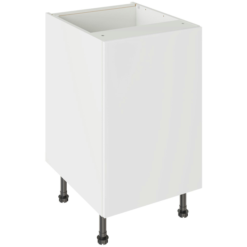 Assembling your kitchen cabinet has never been so easy. With this Kitchen Kit flatpack unit, you won't need to follow pages and pages of complicated instructions. Cabinets can be put together in lightning quick time with our cam and dowel quick-build design. Doors can be hinged on the left or right side of this kitchen unit to best suit your layout, with a soft-close function that ensures they'll never slam shut loudly again. Four adjustable legs make it easy to achieve maximum stability for base units, while a 49 mm service void allows you plenty of space for concealing pipes or wiring. Personalise your kitchen by choosing from a wide range of colours, sizes, and door styles. Whether you prefer the handleless J-Pull, the classic Shaker, or the modern Slab design, you can create a look you’ll love. * Delivered flat-packed with cabinet, door and hinges included * Cam and Dowel Quick-build design * Simply glue and click together to form a strong fixing - fast! * Doors can be hinged on the left or right side to suit your configuration * Fully integrated soft-close hinges - no more doors slamming shut * 150 mm adjustable legs to ensure maximum stability * 49 mm rear service void for concealing pipes, wiring and other essentials * 18 mm MFC cabinet with 8 mm back for rigidity * 18mm Door drilled ready to hang * FIRA Gold certification on doors and cabinets * Door handles, plinths, panels and other accessories sold separately | Kitchen Kit Slab Base Kitchen Cabinet Supermatt 500mm in White